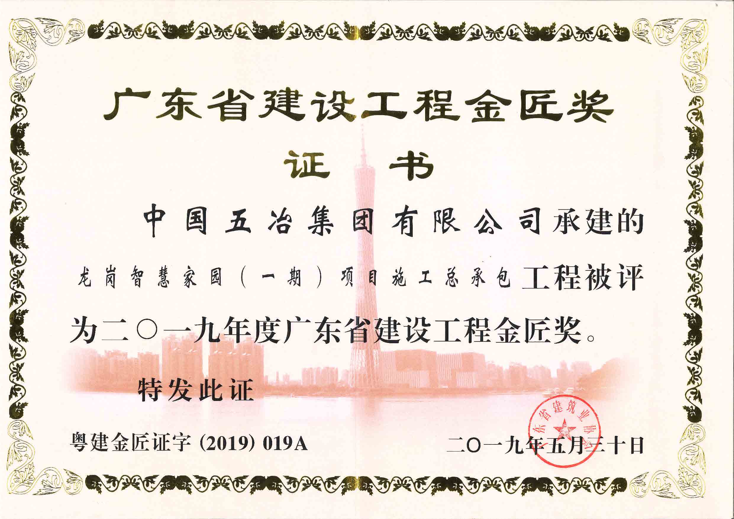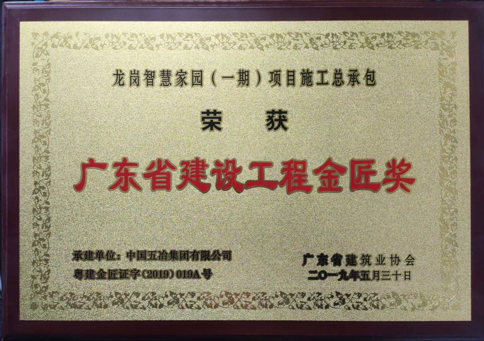龍崗智慧家園(一期)項(xiàng)目施工總承包工程被評定為二〇一九年度廣東省建設(shè)工程金匠獎